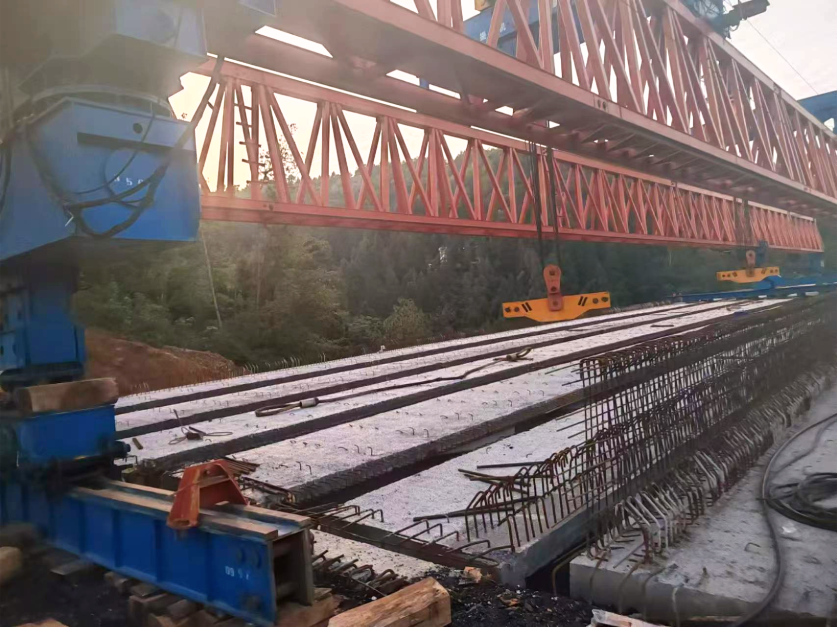 施工過程中,全橋共使用2臺(tái)架橋機(jī),4臺(tái)運(yùn)梁車進(jìn)行施工。項(xiàng)目全線橋梁巖溶發(fā)育強(qiáng)烈,見溶率較高,橋區(qū)地質(zhì)情況復(fù)雜,歷時(shí)一個(gè)月,項(xiàng)目團(tuán)隊(duì)上下一心,通力協(xié)作,順利完成此次大橋T梁架設(shè)任務(wù),為全線早日通車夯實(shí)基礎(chǔ)。
