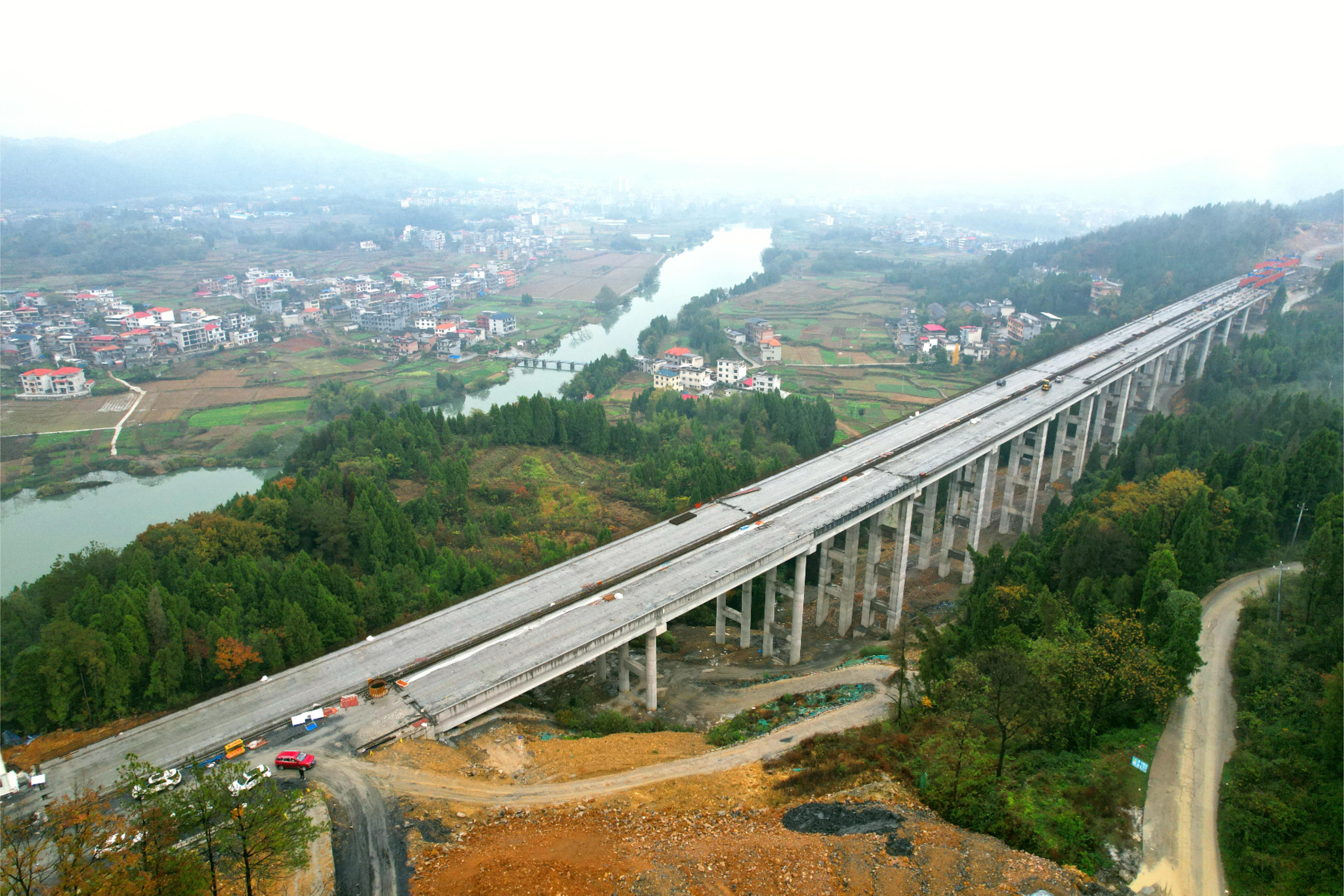 G59新新高速項(xiàng)目全長(zhǎng)21.324千米,全線共25座橋梁,其中特大橋1座,天橋2座,互通式立交橋1座,大中橋21座。