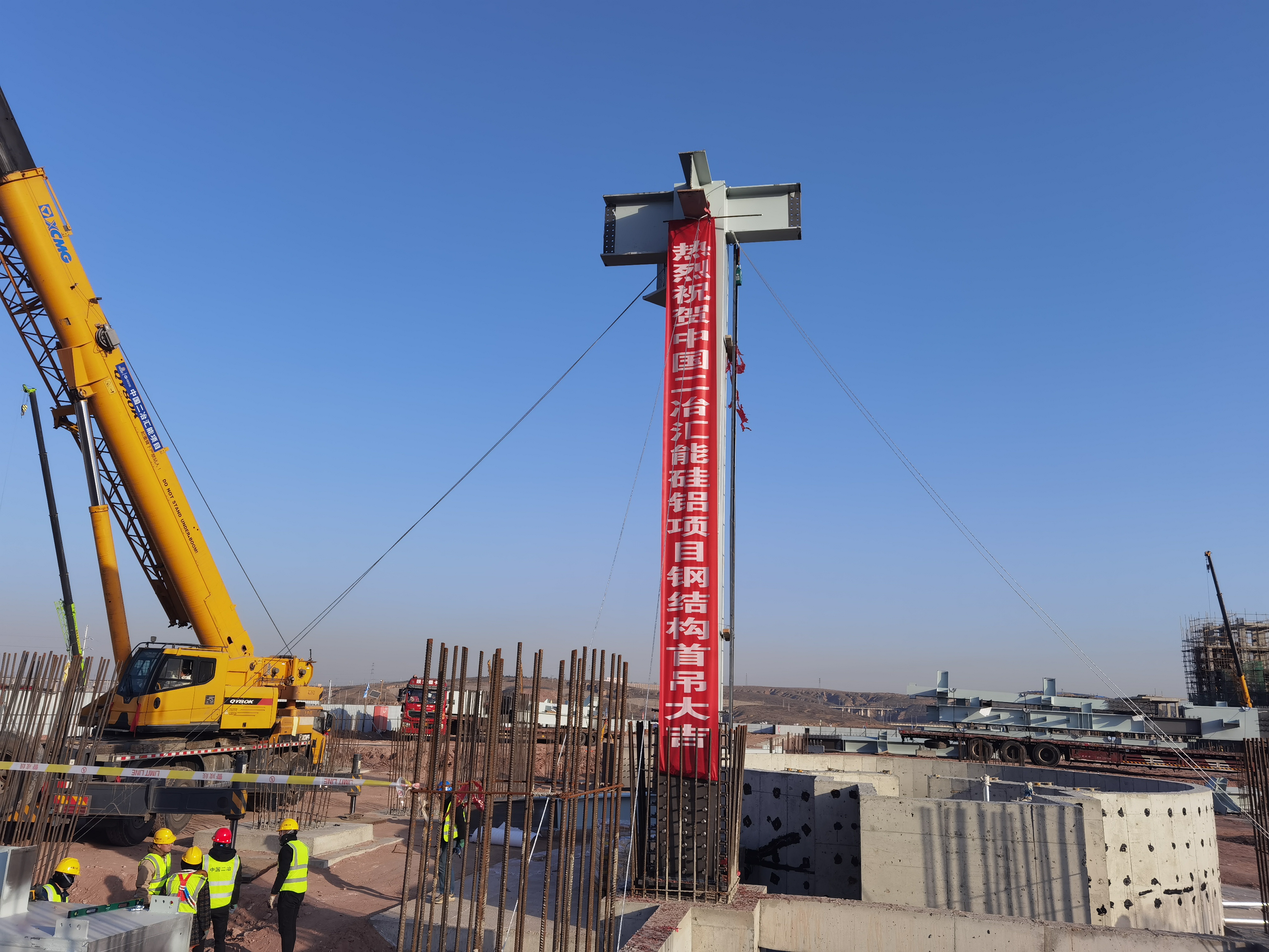 2月26日,城建分公司承建的匯能硅鋁項(xiàng)目鋼結(jié)構(gòu)柱首吊成功。