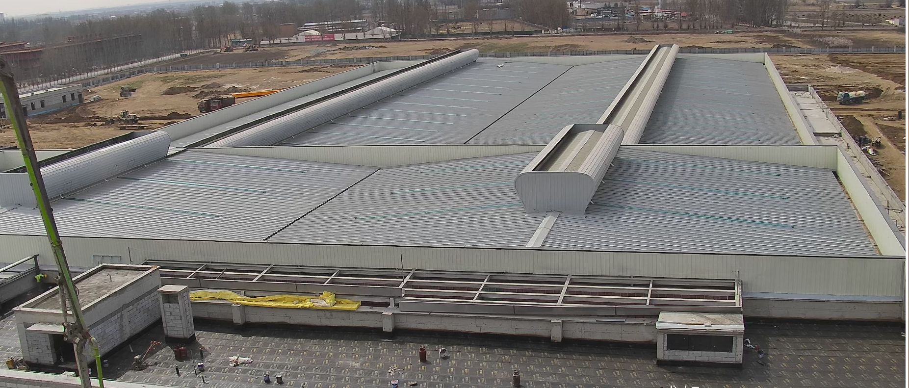 本項目坐落于包頭稀土高新區(qū)朝陽路以東,騰飛大街以南,凌云路以北,星輝路以西。其中,由城建分公司施工的2#生產車間建筑面積2455.6平方米,單層門式鋼結構,高度15.73米,最大單跨跨度34.6米;3#生產車間建筑面積20167.86平方米,主體為單層門式鋼結構,附屬局部一層、三層混凝土框架結構,主要包括建筑、結構、給排水、電氣、暖通等施工內容。工程開工建設后,項目部突破施工場地受限、結構形式復雜、工期緊等特點,精心編制施工方案,合理組織工序穿插,全體建設者以工地為家,披星戴月,頂強風,冒暴雨,斗嚴寒,爭分奪秒搶抓進度,105天內完成2#、3#主體結構施工任務,實現(xiàn)封頂目標。