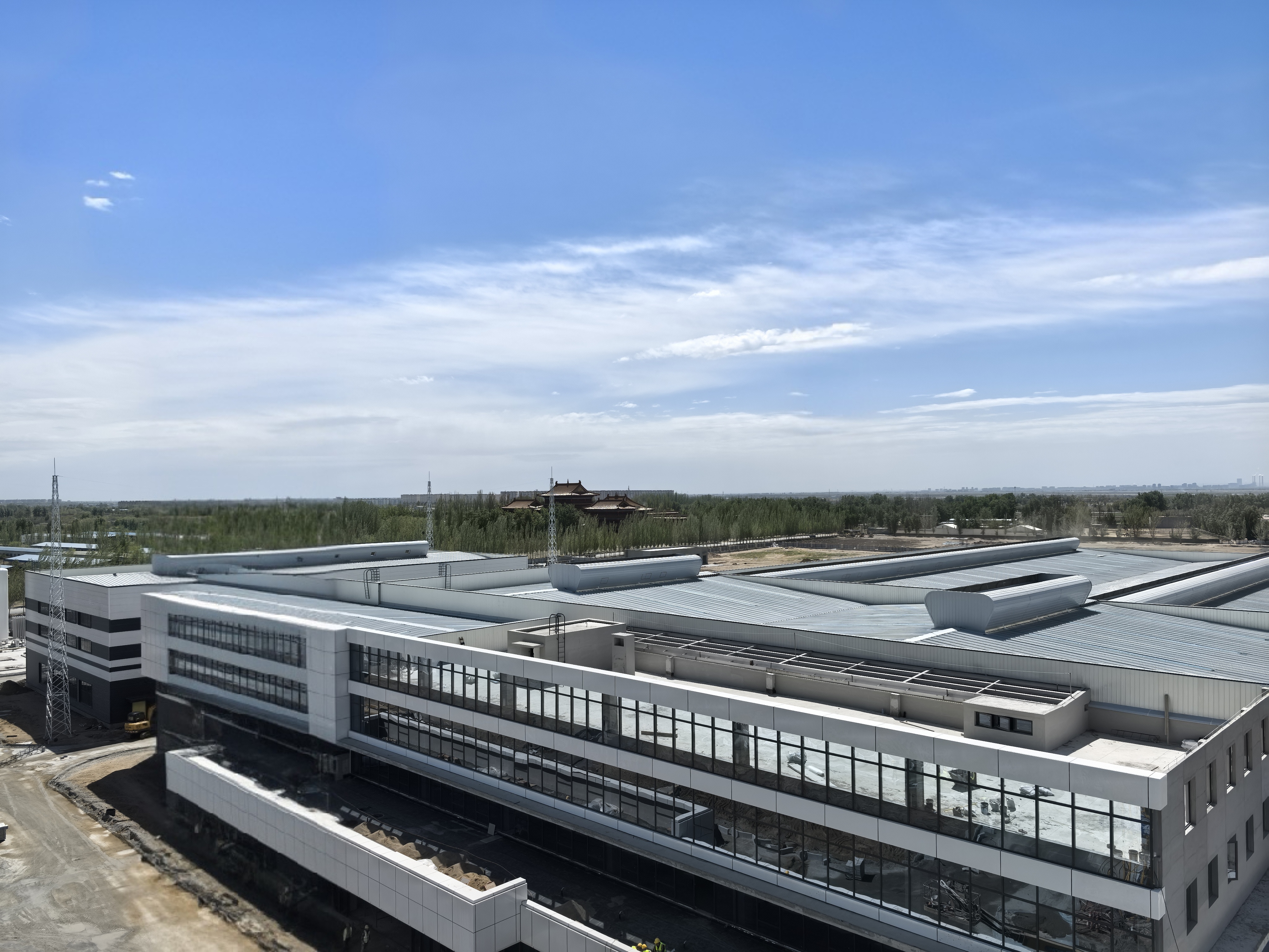 本項(xiàng)目坐落于包頭稀土高新區(qū)朝陽路以東,騰飛大街以南,凌云路以北,星輝路以西。其中,由城建分公司施工的2#生產(chǎn)車間建筑面積2455.6平方米,單層門式鋼結(jié)構(gòu),高度15.73米,最大單跨跨度34.6米;3#生產(chǎn)車間建筑面積20167.86平方米,主體為單層門式鋼結(jié)構(gòu),附屬局部一層、三層混凝土框架結(jié)構(gòu),高度16.1米,最大單跨跨度43.1米;連廊建筑面積82.35平方米,混凝土框架結(jié)構(gòu),高度10.8米,最大單跨跨度13.5米。工程內(nèi)容包括建筑、結(jié)構(gòu)、給排水、電氣、暖通等。工程開工建設(shè)后,項(xiàng)目團(tuán)隊(duì)以嚴(yán)苛標(biāo)準(zhǔn)推進(jìn)工程質(zhì)效,克服冬季低溫、結(jié)構(gòu)復(fù)雜等多項(xiàng)技術(shù)難題,統(tǒng)籌安全、質(zhì)量、進(jìn)度三項(xiàng)目標(biāo),大干168天,實(shí)現(xiàn)“當(dāng)年開工、當(dāng)年竣工”的佳績??⒐を?yàn)收中,評審專家一致認(rèn)為項(xiàng)目工程質(zhì)量、安全性能、工藝布局均達(dá)國內(nèi)領(lǐng)先水平,同意項(xiàng)目通過竣工驗(yàn)收。