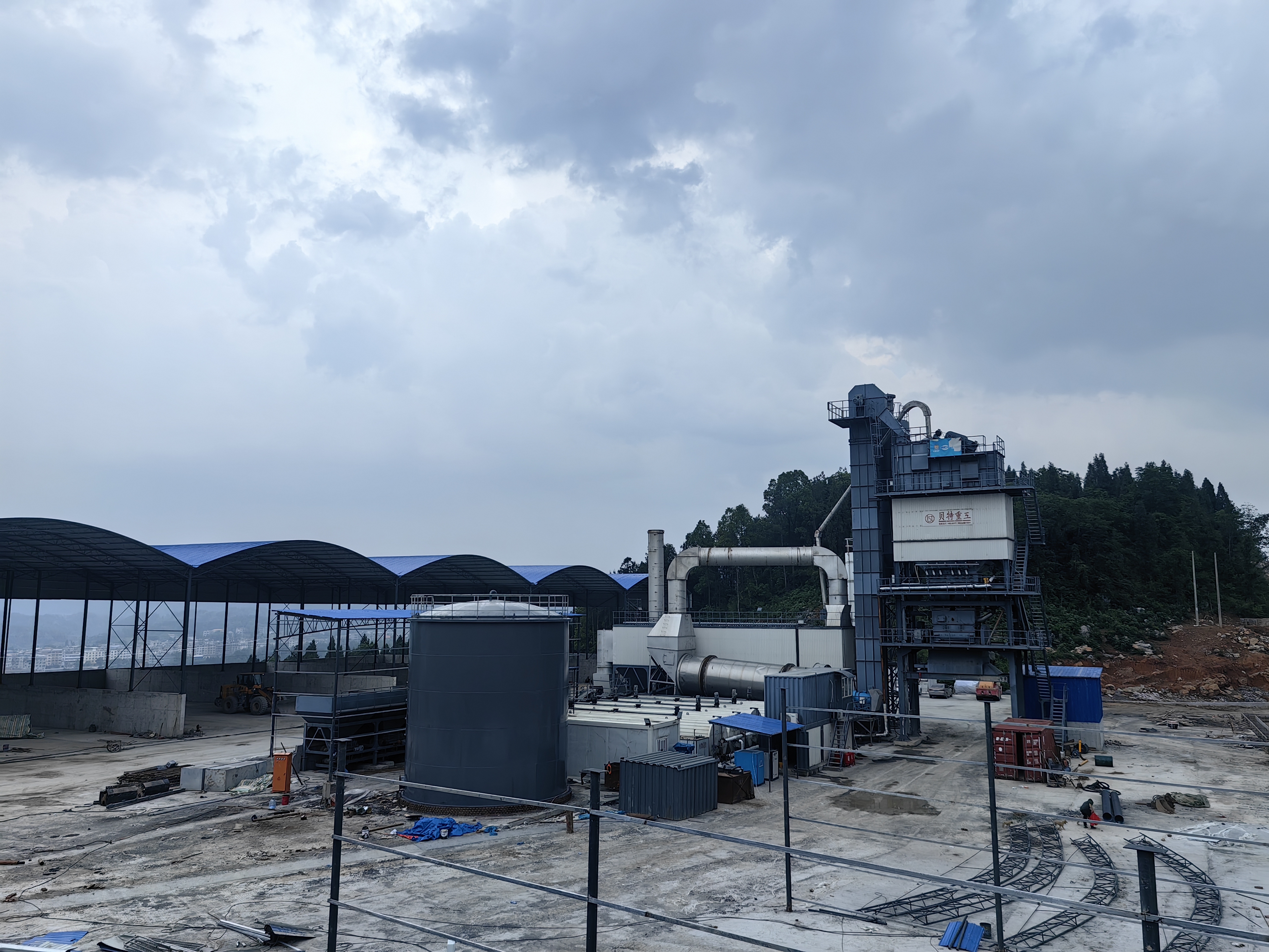 該瀝青站自2025年2月12日開工建設(shè),歷時100天完成主體建設(shè)任務(wù)。配備LB5000A型拌合設(shè)備一套,拌合能力≥320t,性能良好,穩(wěn)定可靠;配有除塵設(shè)備,能夠控制材料中的粉塵含量,配備電子重量傳感器和紅外線溫度傳感器,能準(zhǔn)確地控制材料用量和溫度。目前瀝青站順利完成主體設(shè)備安裝、砼料倉隔墻及地坪施工、料倉鋼結(jié)構(gòu)大棚建設(shè)等重要工程節(jié)點,具備試生產(chǎn)條件,預(yù)計5月25日開始試機。