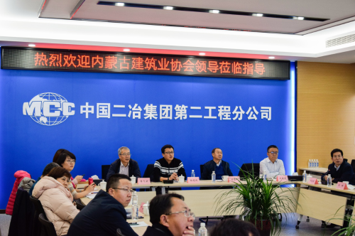 12月6日下午,內(nèi)蒙古自治區(qū)建筑業(yè)協(xié)會(huì)組織副會(huì)長(zhǎng)單位代表一行到中國(guó)二冶第二工程分公司參觀交流。中國(guó)二冶總工程師、副總經(jīng)理武軼彬與對(duì)方進(jìn)行友好會(huì)談,雙方就推動(dòng)內(nèi)蒙古自治區(qū)建筑企業(yè)高速發(fā)展進(jìn)行溝通交流、廣泛交換意見(jiàn)。
