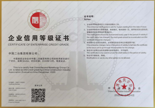 1月8日,從中國(guó)建筑業(yè)協(xié)會(huì)傳來(lái)喜訊,中國(guó)二冶被評(píng)為“2020年度建筑業(yè)AAA級(jí)信用企業(yè)”,這是公司首次獲此殊榮,也是對(duì)公司信用建設(shè)成績(jī)斐然的高度肯定。