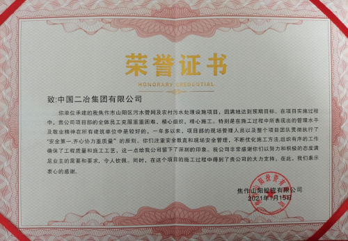 1月25日,中原分公司焦作市山陽區(qū)污水管網及農村污水處理工程建設項目連續(xù)收到焦作市山陽區(qū)住房和城鄉(xiāng)建設局和焦作山陽投資有限公司發(fā)來的表揚信,對項目施工進度、安全質量管理等方面進行表揚,并號召焦作各參建單位對標先進,向該項目部學習。
