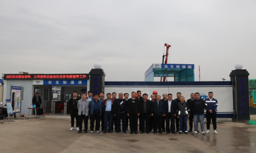 考察團一行在地鐵項目部施工現(xiàn)場合影留念