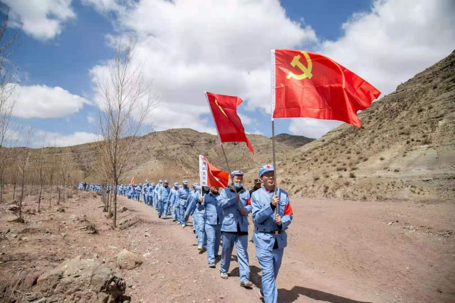 在大青山作戰(zhàn)司令部,大家面對(duì)黨旗和團(tuán)旗,莊嚴(yán)宣誓,在濃厚的儀式氛圍中,堅(jiān)定對(duì)黨忠誠(chéng)的信念;在紀(jì)念館,一個(gè)個(gè)鮮活生動(dòng)、印象深刻的歷史人物與事件,使大家重溫歷史,牢記初心使命;在“行軍”路上,大風(fēng)陣陣,道路崎嶇,大家引吭高歌,一首首紅色歌曲,升華了對(duì)黨和國(guó)家的深厚情感;在終點(diǎn)順利“會(huì)師”,感受歷經(jīng)磨難后勝利的喜悅。