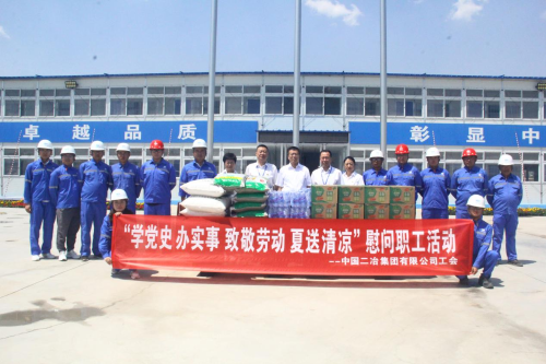 炎炎烈日送清涼,關(guān)愛員工暖人心。7月13日,中國二冶啟動“致敬勞動 夏送清涼”慰問職工活動,公司黨委書記、董事長徐永鋒,總經(jīng)理、黨委副書記高文華等領(lǐng)導(dǎo)紛紛來到施工現(xiàn)場,將綠豆、白糖等防暑慰問品送到一線員工手中,為他們送去了親切問候和濃濃關(guān)懷。