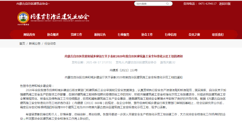 近日,2020年度內(nèi)蒙古自治區(qū)建筑施工安全標(biāo)準(zhǔn)化示范工地名單揭曉,中國二冶包頭市實(shí)訓(xùn)基地項(xiàng)目喜獲內(nèi)蒙古自治區(qū)安全標(biāo)準(zhǔn)化示范工地榮譽(yù)稱號。