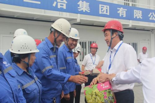 高文華首先對工作在一線員工們的辛勤工作表示感謝和崇高的敬意,聽取了項目負責(zé)人的工作匯報,并與大家親切交談,詳細了解員工們的工作生活情況,鼓勵所有員工,增強集體榮譽感和責(zé)任心,用奮斗譜寫二冶建設(shè)新篇章,并為他們發(fā)放了月餅、水果等節(jié)日禮物,勉勵他們要不忘初心、牢記使命、勇?lián)厝巍8呶娜A指出,在中秋和國慶“兩節(jié)”來臨之際,公司許多員工依然堅守工作崗位勤懇奉獻,正是“一天也不耽誤,一天也不懈怠”的企業(yè)精神,中國二冶才跑出了發(fā)展的“加速度”,公司對廣大員工及其家屬的辛勤付出與大力支持表示衷心感謝。