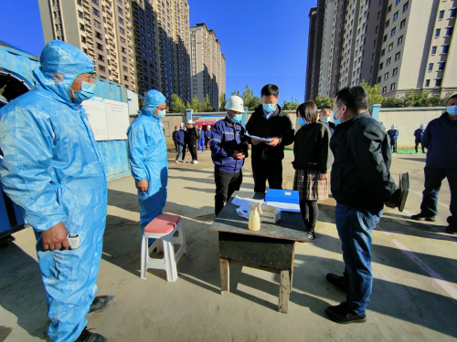 10月26日,包頭市新都市區(qū)管委會(huì)黨組書(shū)記、主任孫義一行到中國(guó)二冶都市庭苑項(xiàng)目檢查指導(dǎo),就當(dāng)前疫情防控工作提出要求。