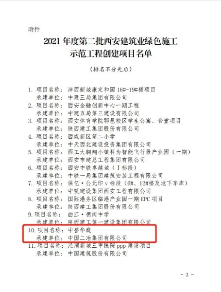 12月30日,由中國二冶承建的中譽華庭項目榮獲“2021年度第二批西安建筑業(yè)綠色施工示范工程”稱號。