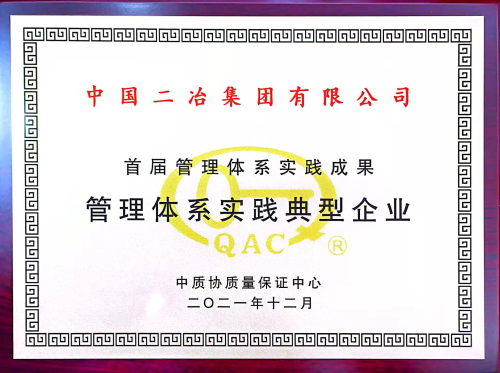 近日,中國二冶在中質(zhì)協(xié)質(zhì)量保證中心舉辦的首屆管理體系實踐成果評選活動中,榮獲“管理體系實踐典型企業(yè)”榮譽稱號。