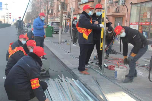 一名黨員就是一面旗幟,一個支部就是一座堡壘。市政分公司領導班子成員率先垂范、靠前指揮,帶領機關部門人員及在包項目人員深入基層社區(qū),按照要求進行小區(qū)大門圍欄封閉工作。參戰(zhàn)人員自覺組建防疫小分隊,成立線上防疫群,哪有需要,“槍”就往哪里“沖鋒”。全體人員及時關注信息動態(tài),快速調配、迅速集結、主動行動,完成好社區(qū)交予的任務,共計完成8個小區(qū)、3個村鎮(zhèn),約400米圍擋施工任務。