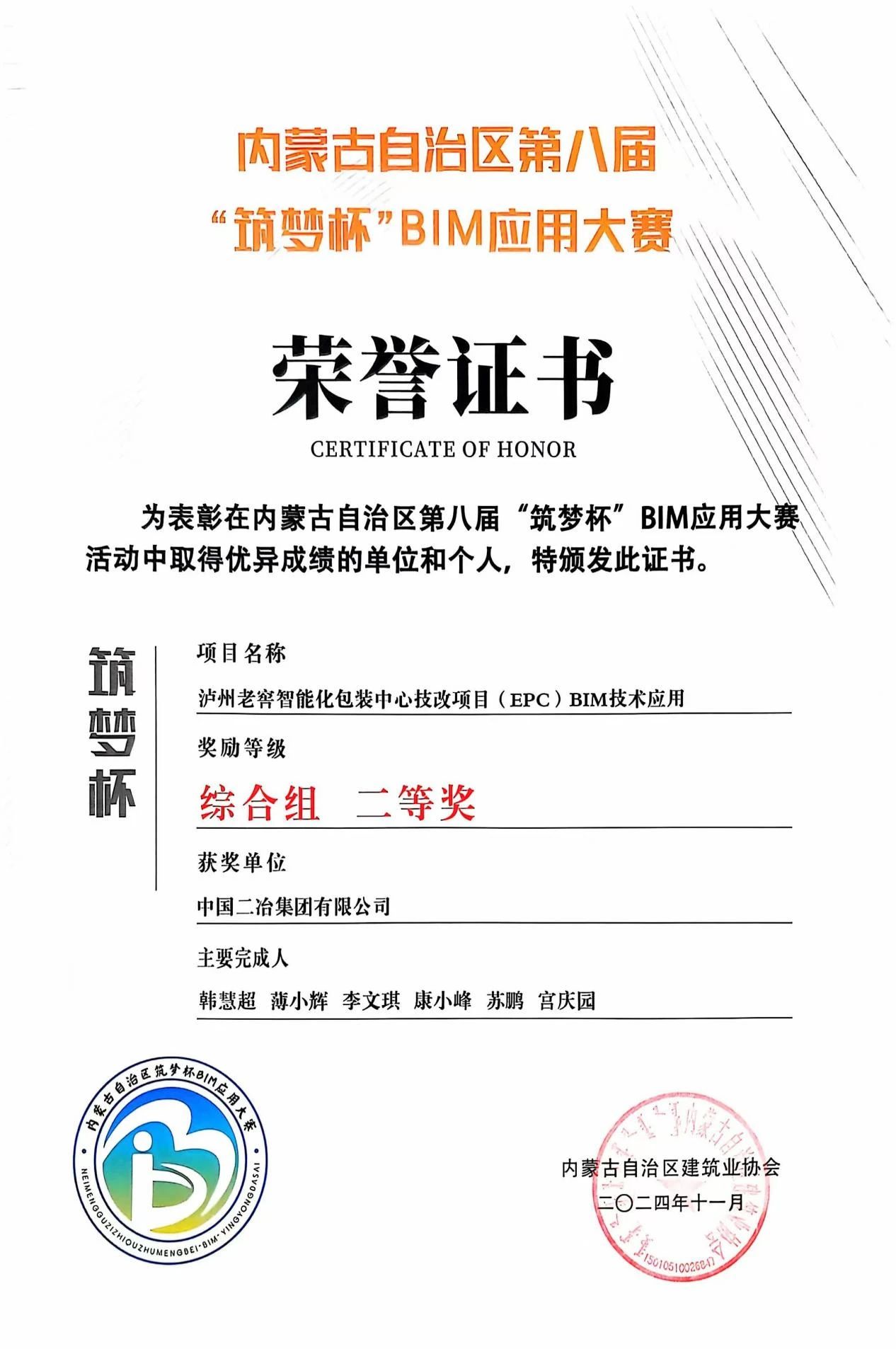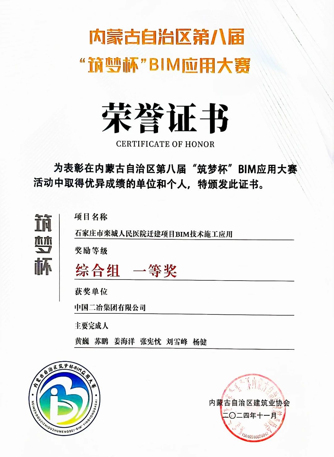 近日,內(nèi)蒙古建筑業(yè)協(xié)會公布了內(nèi)蒙古自治區(qū)第八屆“筑夢杯”BIM應(yīng)用大賽獲獎(jiǎng)名單,中國二冶《石家莊市欒城人民醫(yī)院遷建項(xiàng)目BIM技術(shù)施工應(yīng)用》《瀘州老窖智能化包裝中心技改項(xiàng)目(EPC)BIM技術(shù)應(yīng)用》兩項(xiàng)技術(shù)分別榮獲內(nèi)蒙古自治區(qū)第八屆“筑夢杯”BIM應(yīng)用大賽綜合組一等獎(jiǎng)和二等獎(jiǎng)。