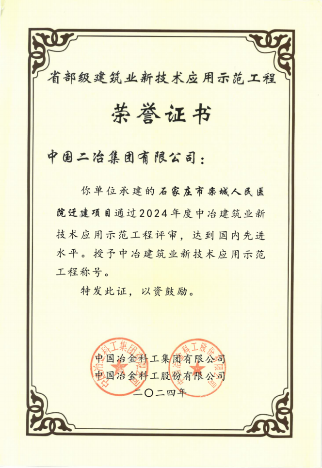 近日,由中國二冶承建的G59呼北高速湖南省新化至新寧段項(xiàng)目、石家莊市欒城區(qū)人民醫(yī)院遷建項(xiàng)目、西安地鐵15號線一期工程3標(biāo)段一工區(qū)工程,被評為“中冶建筑業(yè)新技術(shù)應(yīng)用示范工程”,其新技術(shù)應(yīng)用與技術(shù)創(chuàng)新水平被認(rèn)定為國內(nèi)領(lǐng)先水平。