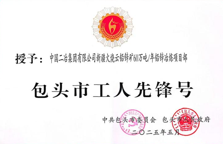 近日,中共包頭市委員會包頭市人民政府公布關(guān)于表彰包頭市五一勞動獎的決定,中國二冶新疆火燒云鉛鋅礦60萬噸/年鉛鋅冶煉工程項目榮獲“2025年包頭市工人先鋒號”榮譽稱號。