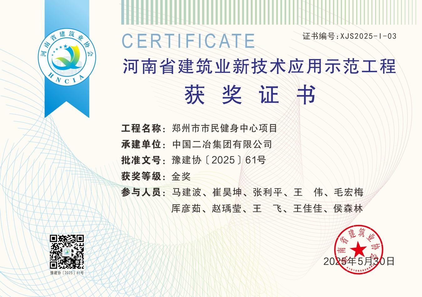 6月4日,中國二冶承建的鄭州市市民健身中心項(xiàng)目榮獲2025年“河南省建筑業(yè)新技術(shù)應(yīng)用示范工程”榮譽(yù)稱號(hào)。