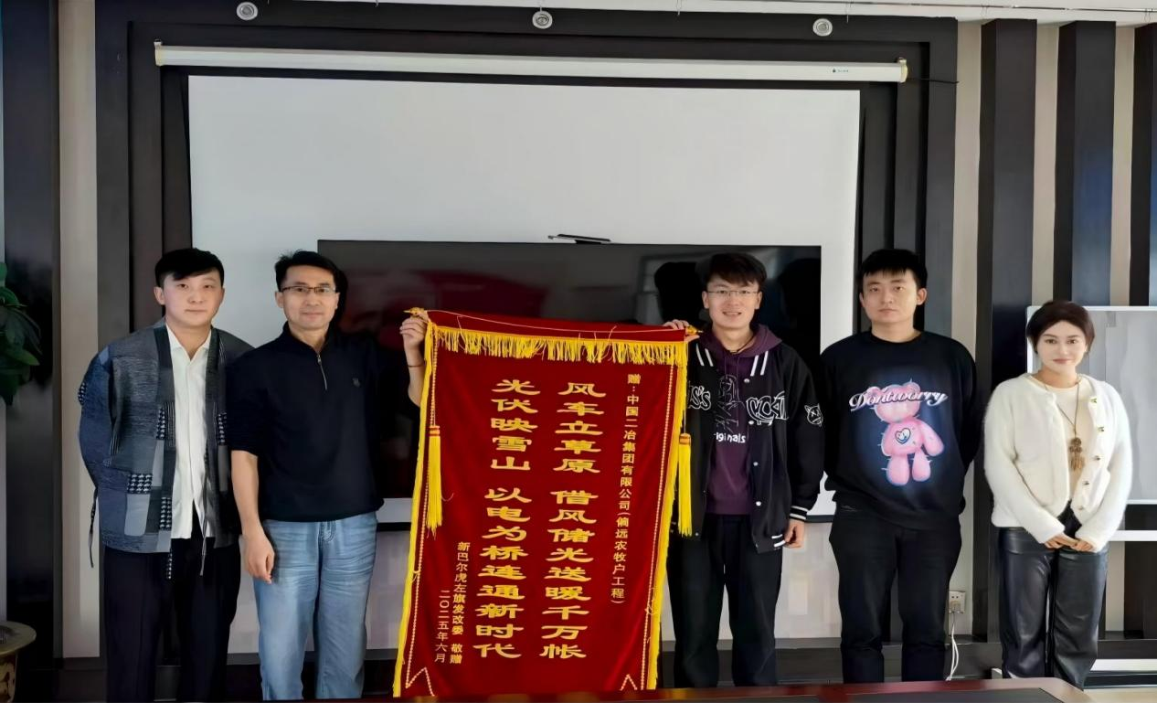 錦旗上題寫“風車立草原,借風儲光送暖千萬帳;光伏映雪山,以電為橋連通新時代”,生動詮釋了項目的核心價值與深遠意義。新巴爾虎左旗政府表示,該項目地處內(nèi)蒙古偏遠牧區(qū),氣候條件惡劣、交通出行不便,整體施工環(huán)境極為艱苦。面對挑戰(zhàn),項目管理團隊充分發(fā)揮技術(shù)與管理優(yōu)勢,始終以“高標準、高質(zhì)量、高效率”為施工準則,全力克服物資運輸困難、極端天氣影響等多重難題,最終如期完成節(jié)點任務(wù)。該項目的順利推進,不僅成功解決了當?shù)剞r(nóng)牧民的急難愁盼問題,直接惠及數(shù)百戶農(nóng)牧民家庭,顯著提升了牧區(qū)群眾的生活品質(zhì);更通過產(chǎn)業(yè)配套升級,為當?shù)亟?jīng)濟可持續(xù)發(fā)展注入了新動能,為邊疆牧區(qū)發(fā)展奠定了堅實基礎(chǔ)。